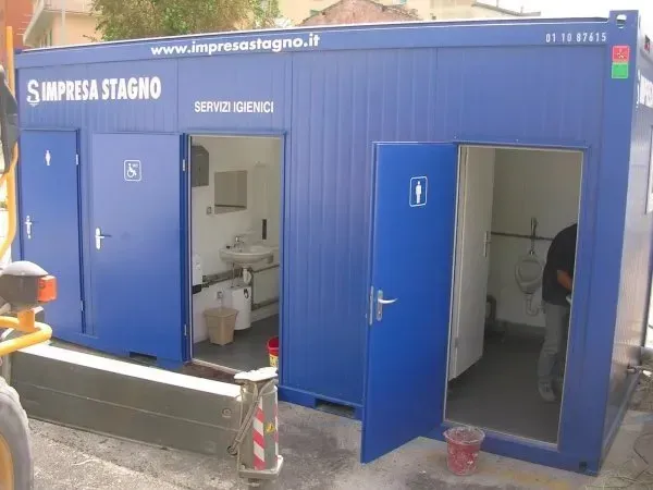 I container ad uso sanitario proposti da Impresa Stagno necessitano di un allacciamento idrico, fognario ed elettrico e dispongono di acqua corrente al posto di prodotti chimici, presentando un allestimento completo e confortevole, soddisfando i più scrupolosi controlli sanitari. L'installazione sul posto avviene in modo facile e veloce.